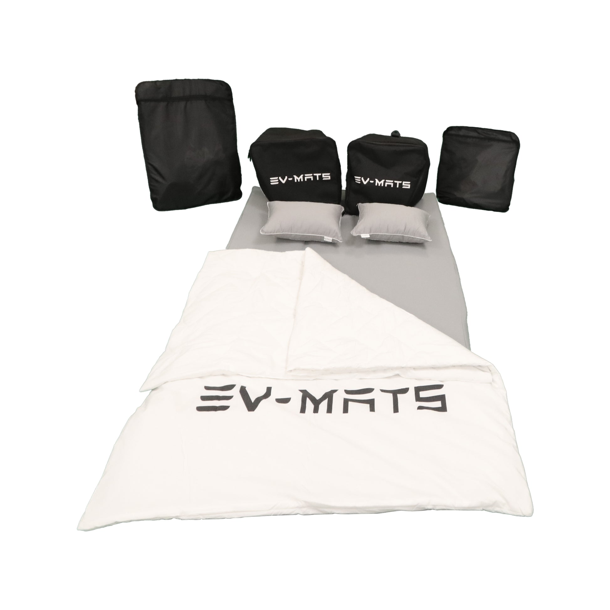 EV-MATS Deluxe CAMP SET 适用于特斯拉Model Y,配备特斯拉床垫,带防水后备箱的防水袋,缎面床单,被子,2个带套的枕头,11个色调和Model Y前备箱的2个防水袋
